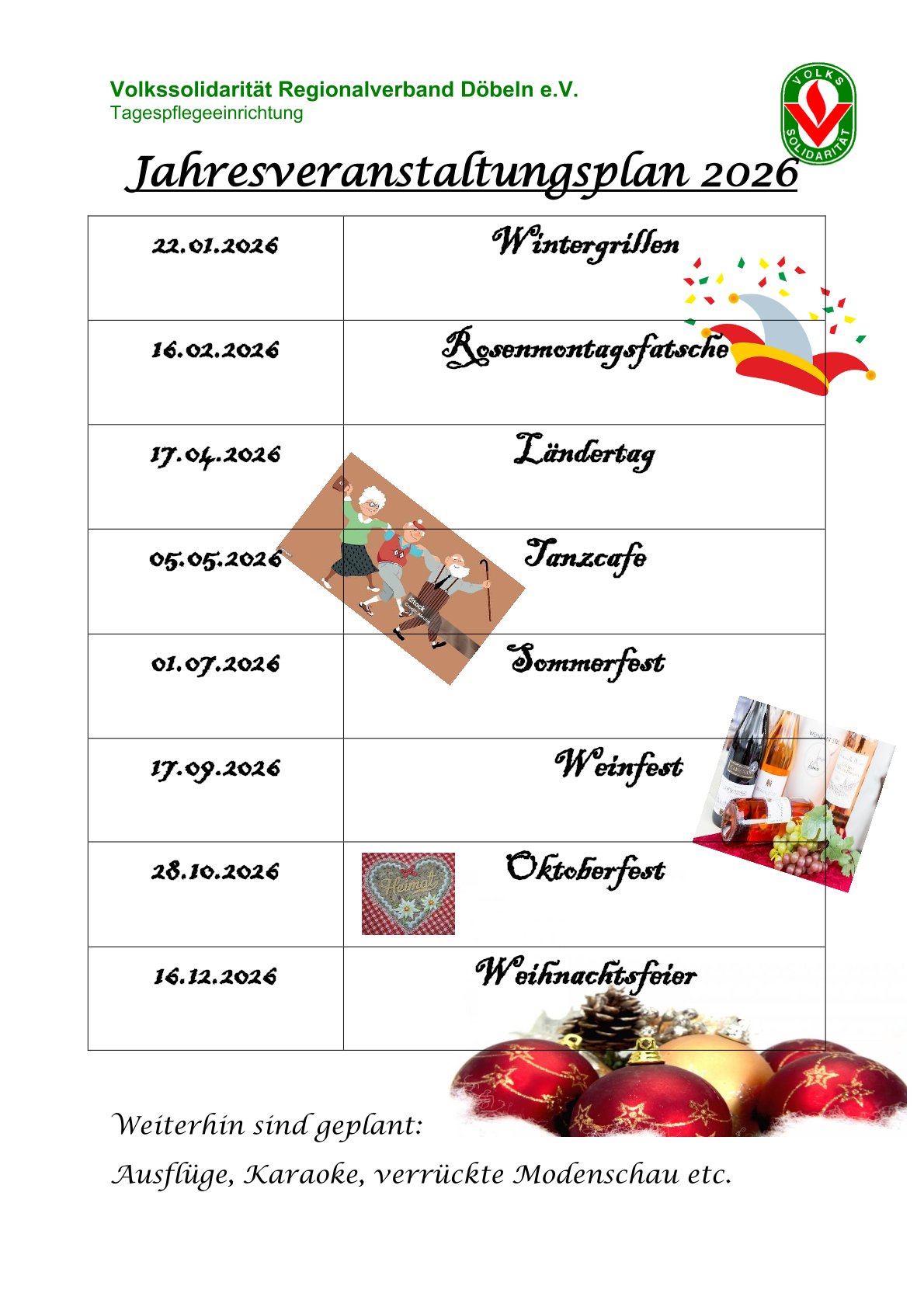 Jahresveranstaltungsplan 2026 unserer Tagespflege